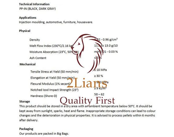 Chemical properties PP Black Recycled Pellet